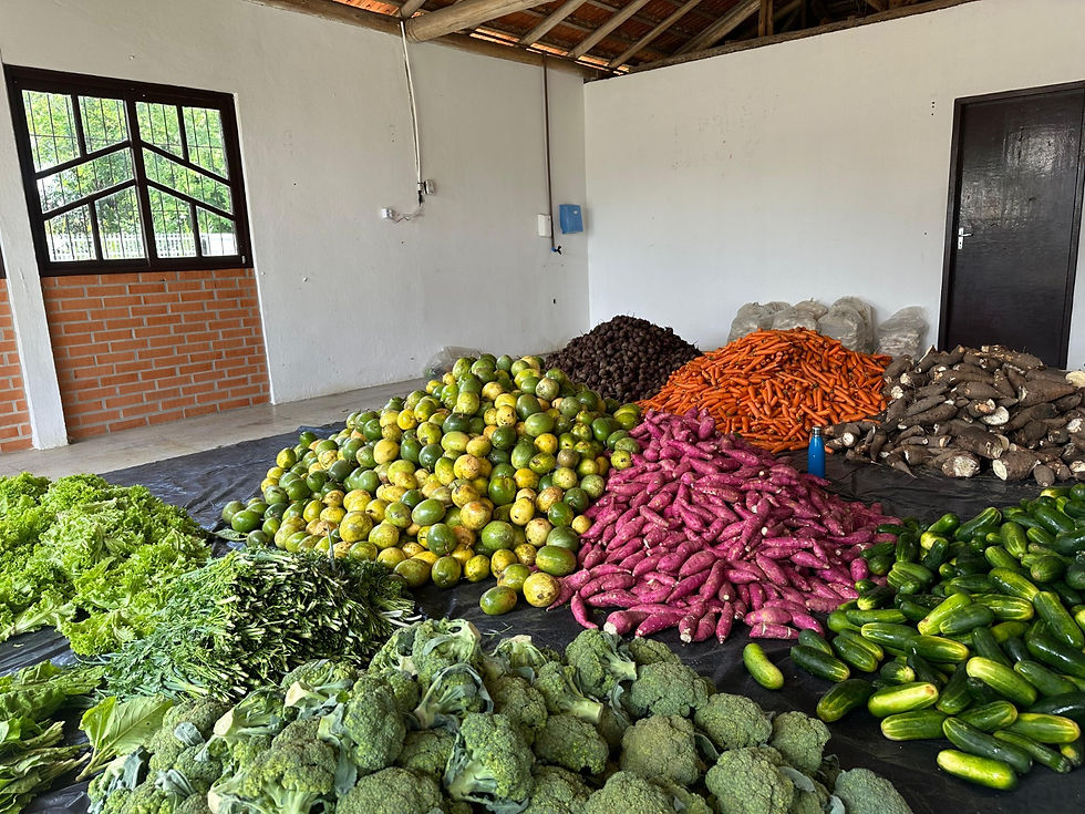 Os kits foram montados com itens adquiridos da agricultura familiar local e da região. São compostos por peixe Maria Luísa, banana branca e caturra, pepino, aipim, abóbora rajada, cenoura, beterraba, maracujá, limão, berinjela, couve, alface, batata doce, cheiro verde, biscoito amanteigado, macarrão caseiro e brócolis.